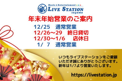 新年は1/7より営業いたしますのでよろしくお願いいたします。
